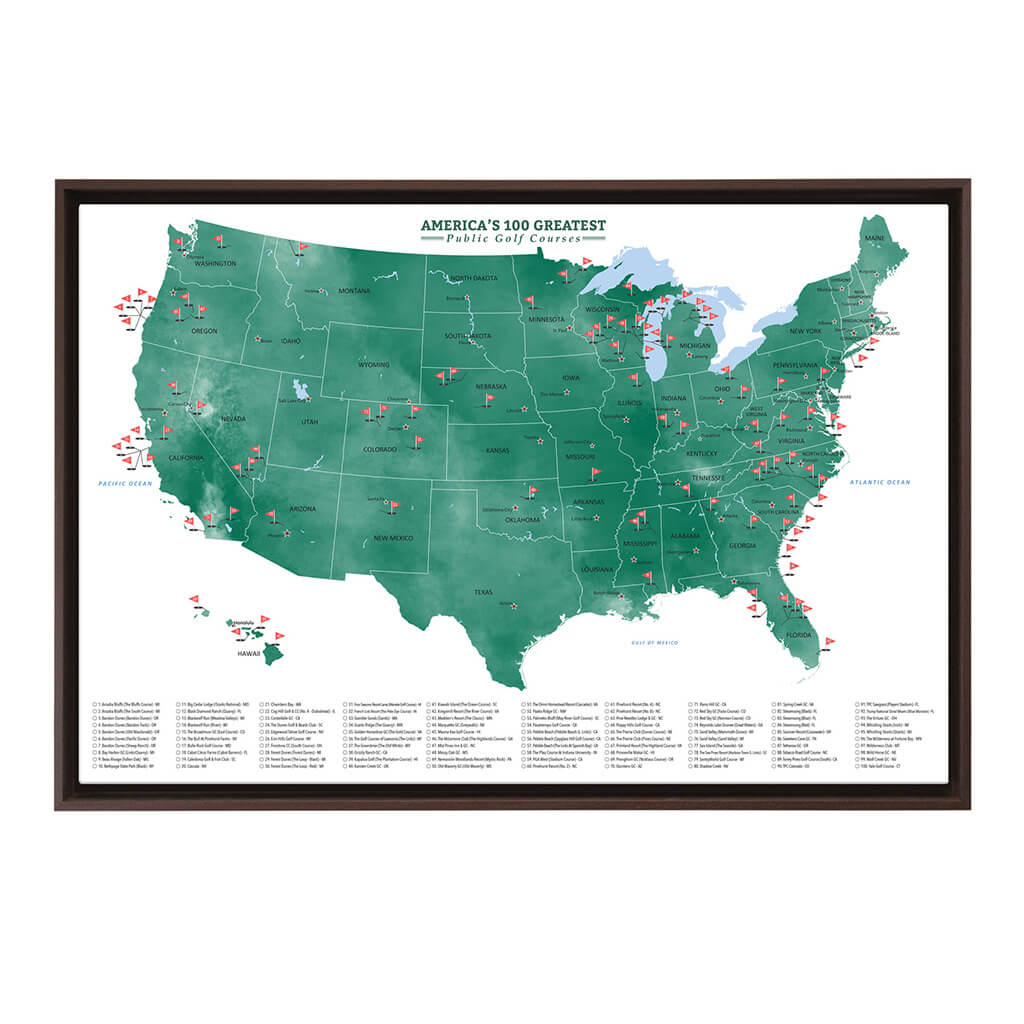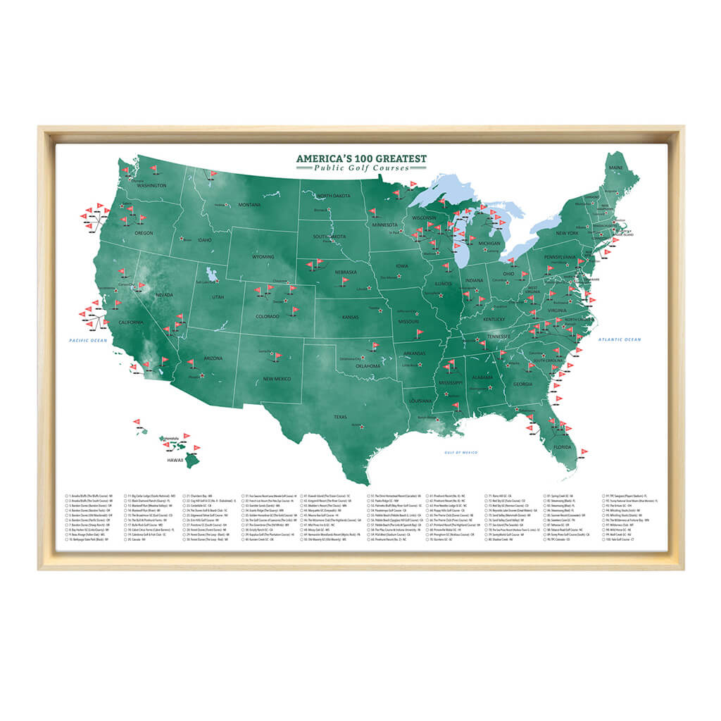 Gallery Wrapped Canvas Golf Courses Wall Map | Checklist of Top